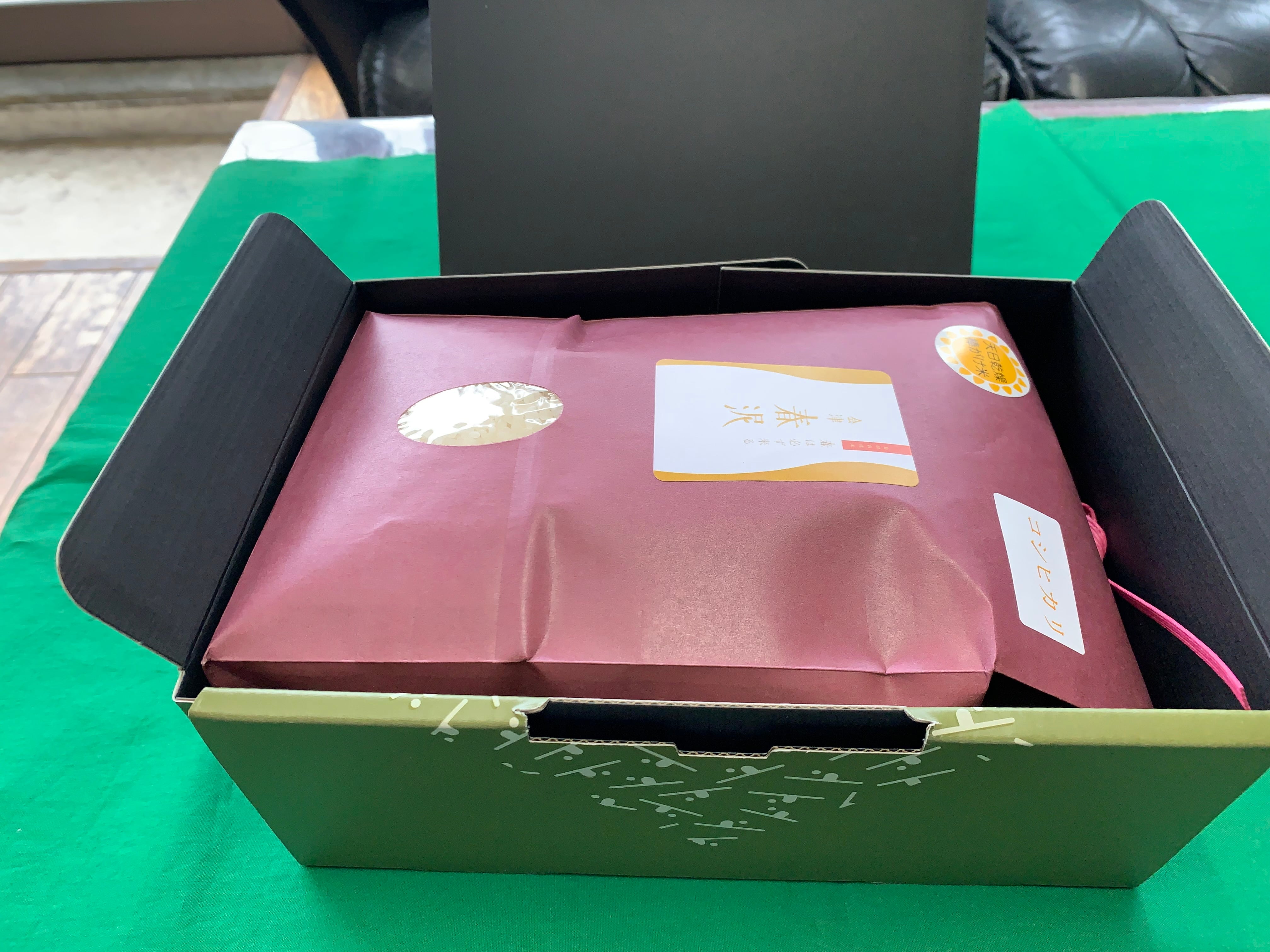 ご贈答用:お米化粧箱 / 2kg 用 小紋包松葉色(緑)