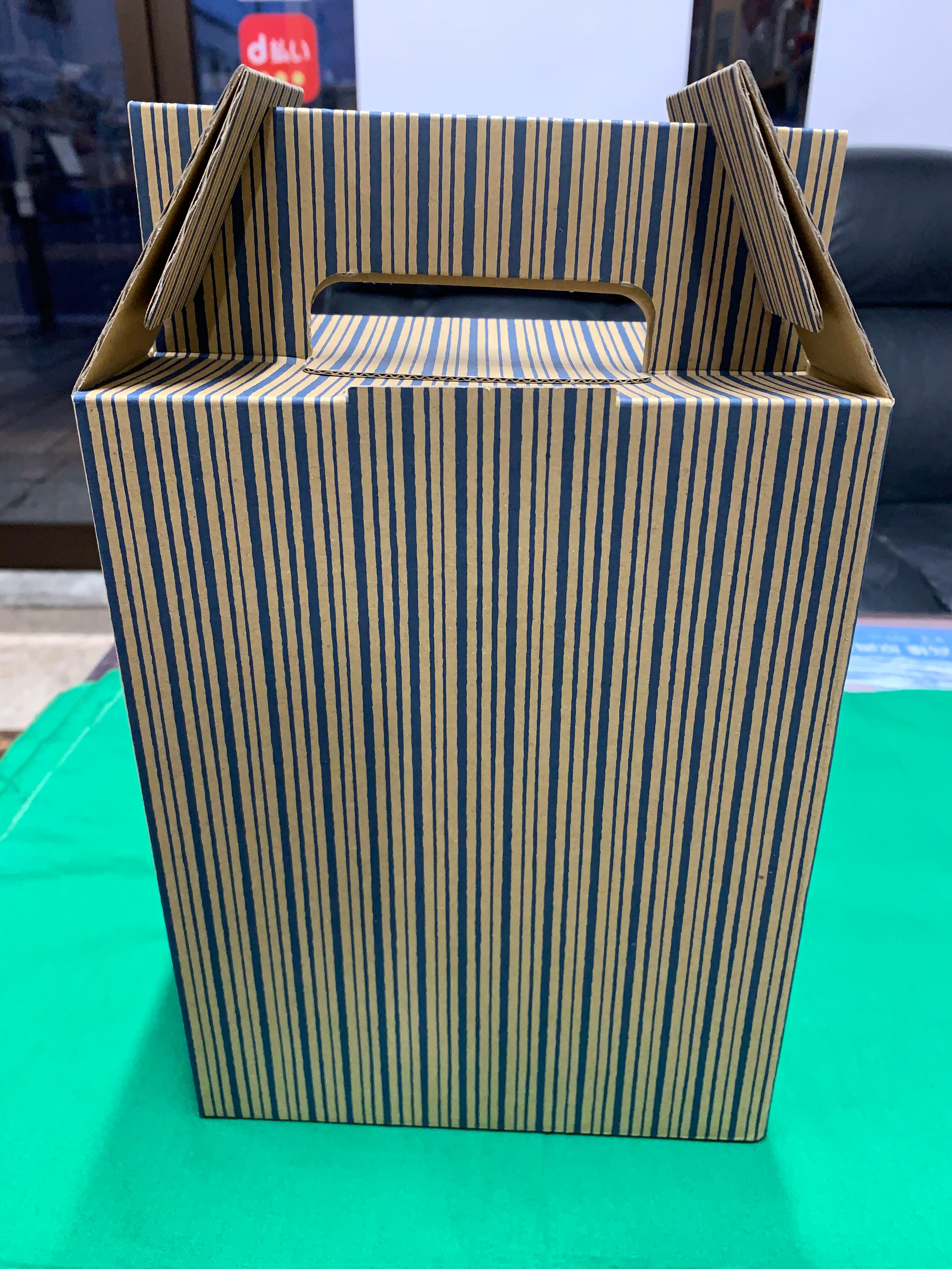 ご贈答用:お米化粧箱 / 3kg 用 縦縞柄(紺)